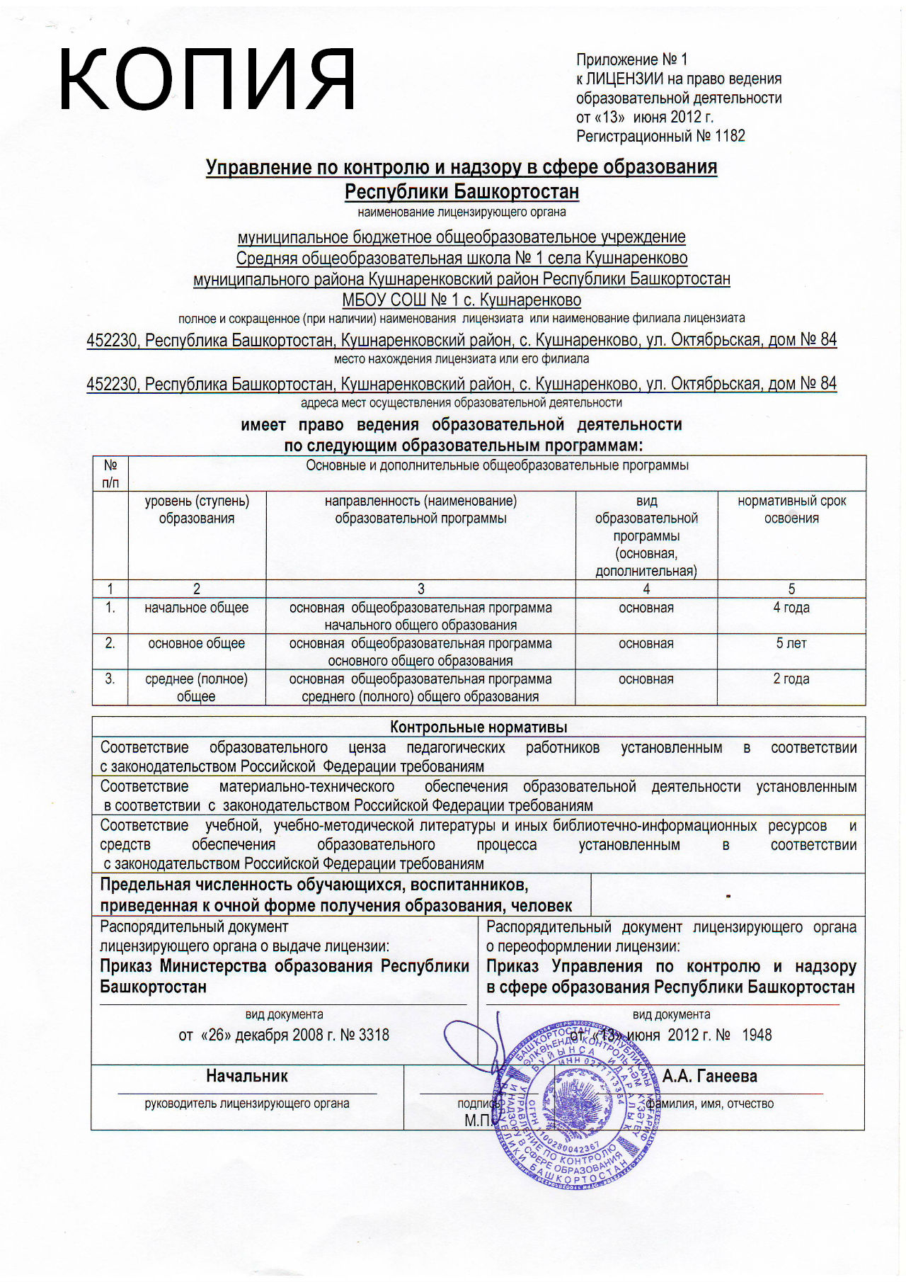 Муниципальное бюджетное общеобразовательное учреждение Средняя общеобразовательная школа № 1 имени Героя Советского Союза В.Д. Паширова села Кушнаренково муниципального района Кушнаренковский район Республики Башкортостан