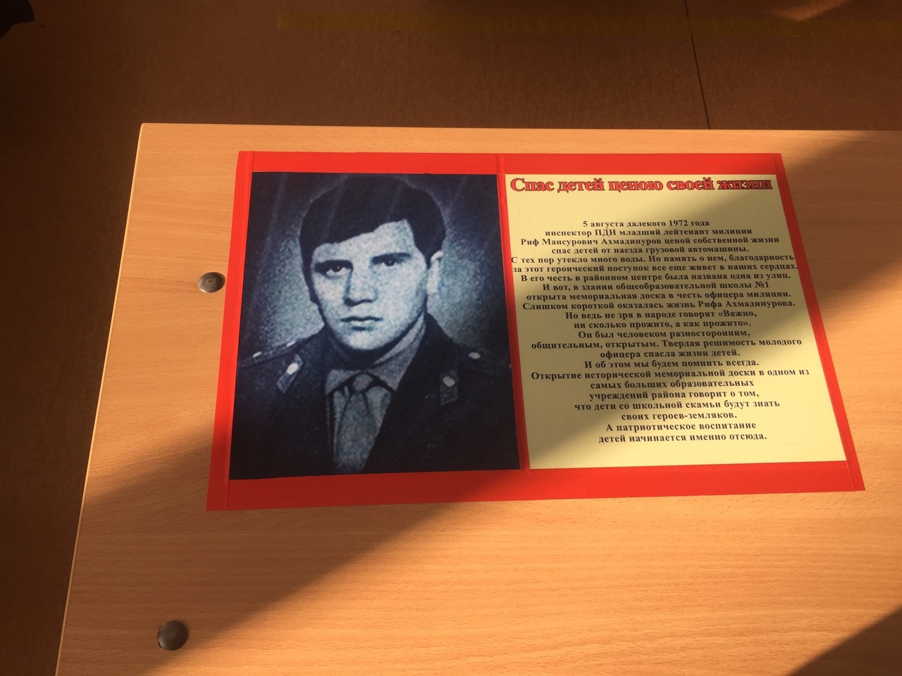 Сегодня 22 февраля 2022 года, состоялось открытие "Парты Героя" в МБОУ СОШ № 1 с. Кушнаренково в здании начальной школы. На данном мероприятии принимали участие глава администрации МР Кушнаренковский район РБ Ахмадуллин М.З., руководитель регионального исполнительного комитета Башкортостанского регионального отделения Всероссийской политической партии «ЕДИНАЯ РОССИЯ» Ахмадинуров Р.М., приглашенные гости. На классном часу в 2б классе учитель начальных классов Гайнутдинова А.М. организовала беседу с классом о подвиге - земляка Ахмадинурова Рифа Мансуровича.